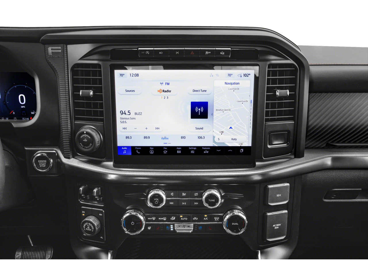 - SYNC 4 w/Enhanced Voice Recognition -inc: 12" LCD capacitive touchscreen w/swipe capability, wireless phone connection, cloud connected, AppLink w/App catalog, 911 Assist, Apple CarPlay and Android Auto compatibility, digital owners manual, conversational voice command recognition and connected navigation, Note: Navigation services require SYNC4 and FordPass Connect (optional on select vehicles), Eligible vehicles receive a complimentary 1-year trial of navigation services that begins on the new vehicle warranty start date, Customers must unlock the navigation service trial by activating the eligible vehicle w/a FordPass member account, If not subscribed by the end of the complimentary period, the connected navigation service will terminate, and the system will revert to embedded offline navigation, Connected service and features depend on compatible AT&T network availability, Evolving technology/cellular networks/vehicle capability may limit functionality and prevent operation of connected features, FordPass App, compatible w/select smartphone platforms, is available via a download, Message and data rates may apply